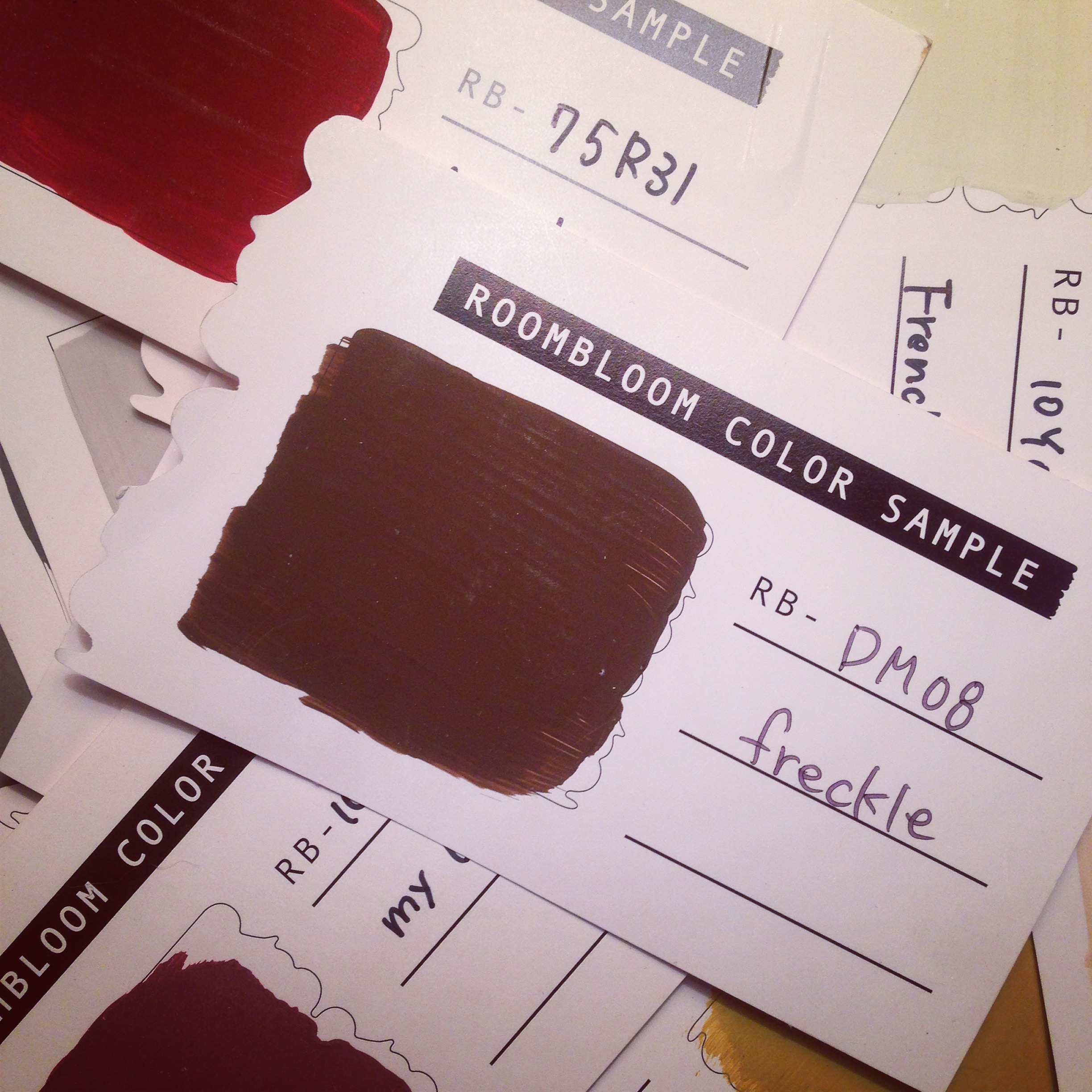 まずはカタログから何色かピックアップ、そのあと現地で大きなサンプルを壁に貼って確認して…